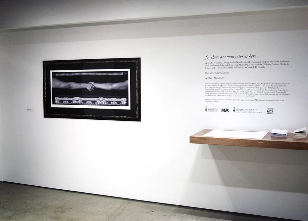 In the exhibition, Andrea Chung, Doris McCarthy, Ana Mendieta, Shelley Niro, Elizabeth Simcoe, Leanne Betasamosake Simpson and Alize Zorlutuna explore and share their (hi)stories. Their stories take the form of archive ephemera, books and diaries, soundscape and video, and pursue self-determination as a form of resistance and remembrance.