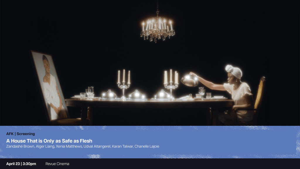 Filmmakers Zandashé Brown, Alger Liang, Xenia Matthews, Udval Altangerel, Karan Talwar and Chanelle Lajoie present a series of motherhoods that traverse spatial-temporal labyrinths and generously hold space for this line of questioning.