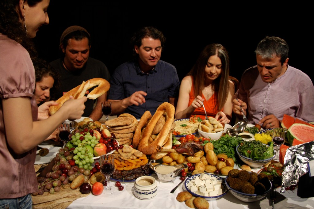 A group of friends meet in Bethlehem, Palestine for a lavish feast.